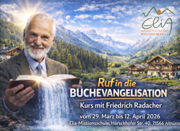 Du möchtest in Deine Gesundheit investieren?Wir helfen Dir mit natürlichen Heilmitteln in Lebensstilfragen und bei Beschwerden. Außerdem bieten wir viele interessante Workshops und Vorträge zur Herstellung von Kräuterprodukten und deren Anwendungen! Elia Lifestyle Center Möchtest Du Dich für die Mission aus- oder weiterbilden lassen? Wir bieten Kurse, Seminare und Vorträge an. Elia Missionsschule Elia Missionswerk Wir suchen noch ehrenamtliche Mitarbeiter VeranstaltungenAktuelles Workshops & Veranstaltungen 2026 Vortrag: „Blue Zones“ Das Geheimnis eines langen und glücklichen Lebens am 25.02.26 um 18.30 Uhr von Dr. M. Küsel Vortrag: „Achtsamkeit! Zucker und andere versteckte Suchtmittel entdecken!“ am 25.03.26 um 18.30 Uhr von Dr. M. Küsel Kurs: „Ruf in die Buchevangelisation“ mit Friedrich Radacher vom 29.3.-12.4.26 Lifestylewoche: „Detox“ Frühlingsputz für Körper und Seele vom 19. – 26. April 2026 Workshop: „Holzkohle, das schwarze Wunder!“ am 21.04.2026 um 18.30 Uhr mit Nicole Emmerling Lifestylewoche: „Basen-fasten-Wanderwoche“ vom 10. bis 17. Mai Familienfreizeit mit Raimund Fuchs vom 31.5. bis 7.6.2026KursinhaltePraxisnahes Ausbildungsprogramm Bibelstudium & Prophetie Mission & Evangelisation Jüngerschaft & Identität Gesundheit Gartenbau & Handwerk mehr erfahrenFlyer anzeigen Unterstützen Sie uns SpendenHaben Sie Fragen? Dein Name Deine E-Mail-Adresse Betreff Deine Nachricht (optional) Bilder Gallerie